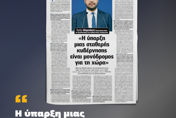 Συνέντευξη στην εφημερίδα Απογευματινή της Κυριακής με τη δημοσιογράφο Πένυ Αβραμίδη Με αφορμή την…